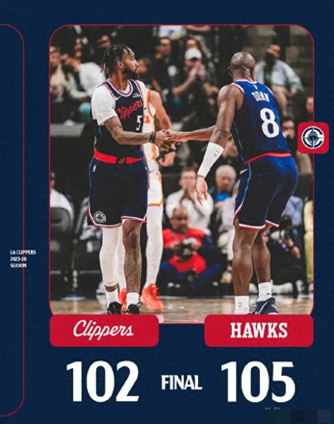 快船开局攻势凌厉。哈登首节便展现超强串联能力,送出7篮板3助攻,祖巴茨与科林斯轮番冲击前场篮板,一波12-2的攻势直接打懵老鹰,比分迅速拉开至36-19。彼时的快船攻防有序,传球流畅,每一次进攻都透着豪华阵容的底气,没人能预料到,这样的优势会在半场内化为乌有。