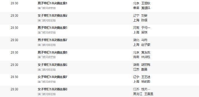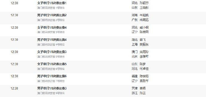 虎扑11月12日讯全运会乒乓球项目,今日将决出男女单8强,具体赛程如下: